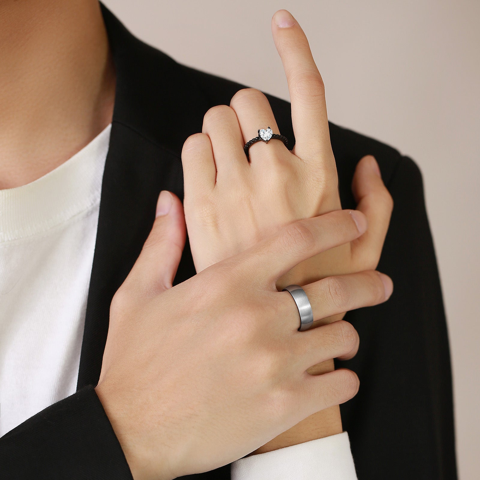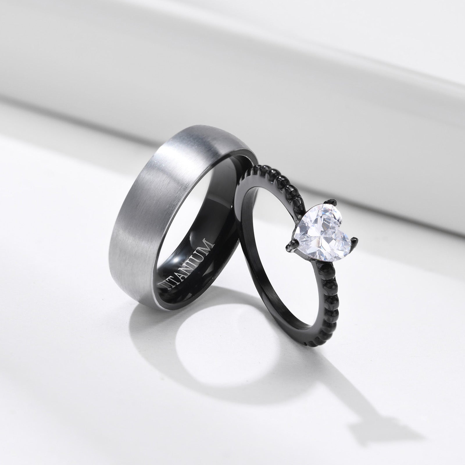 Add a touch of elegance and unity with this stunning Black Zircon Wedding Ring Pair, crafted for modern couples who value both style and symbolism. These rings feature a sleek heart-shaped design and premium black zircon detail, making them perfect for engagements, weddings, or anniversary gifts.